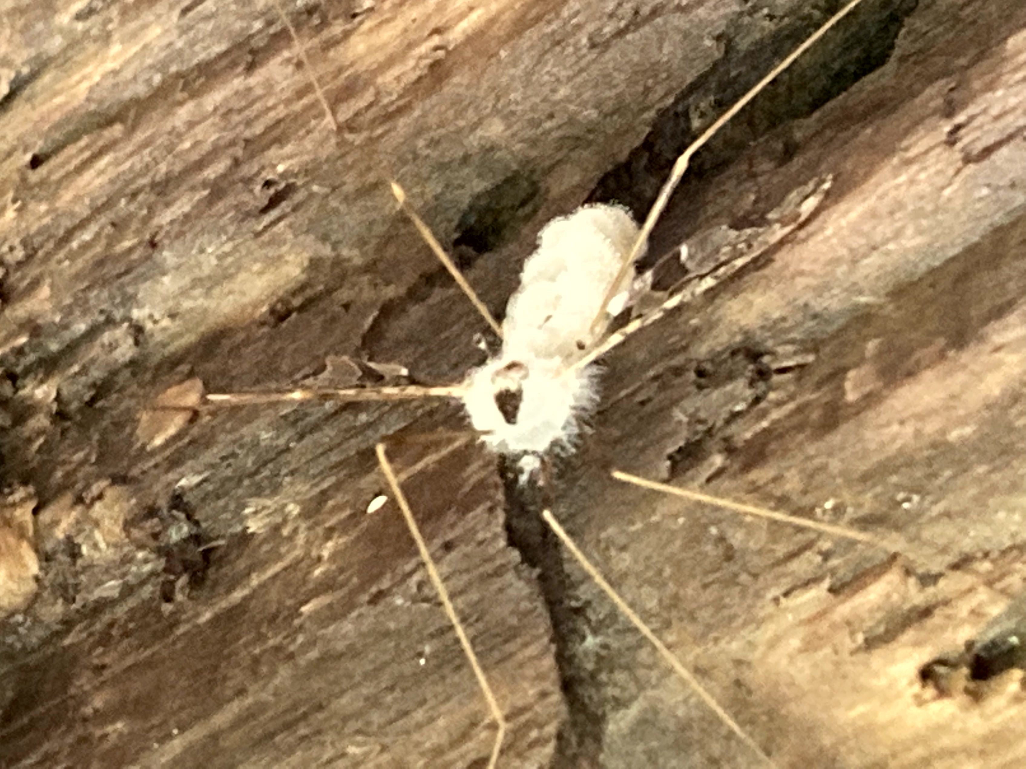 Epiphragma solatrixIt appears this individual has been infected with a fungus that has presumably emerged to release spores causing the white fuzzy appearence.