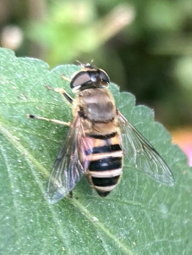 Family SyrphidaeA majority of hover flies seem to mimic bees and wasps and are commonly mistaken as such by unknowing observers. However, these insects are harmless and can be seen visiting flowers for nectar.