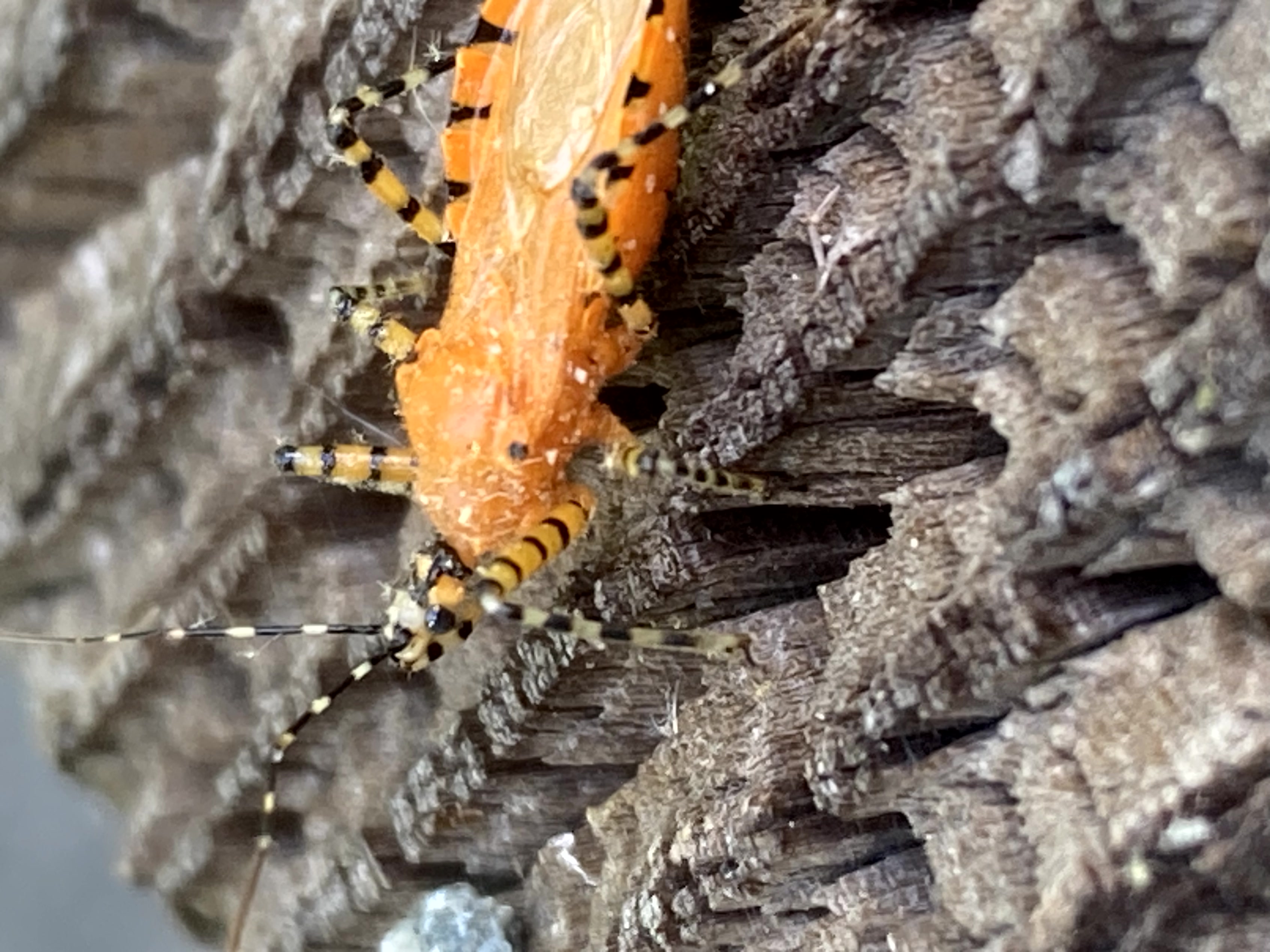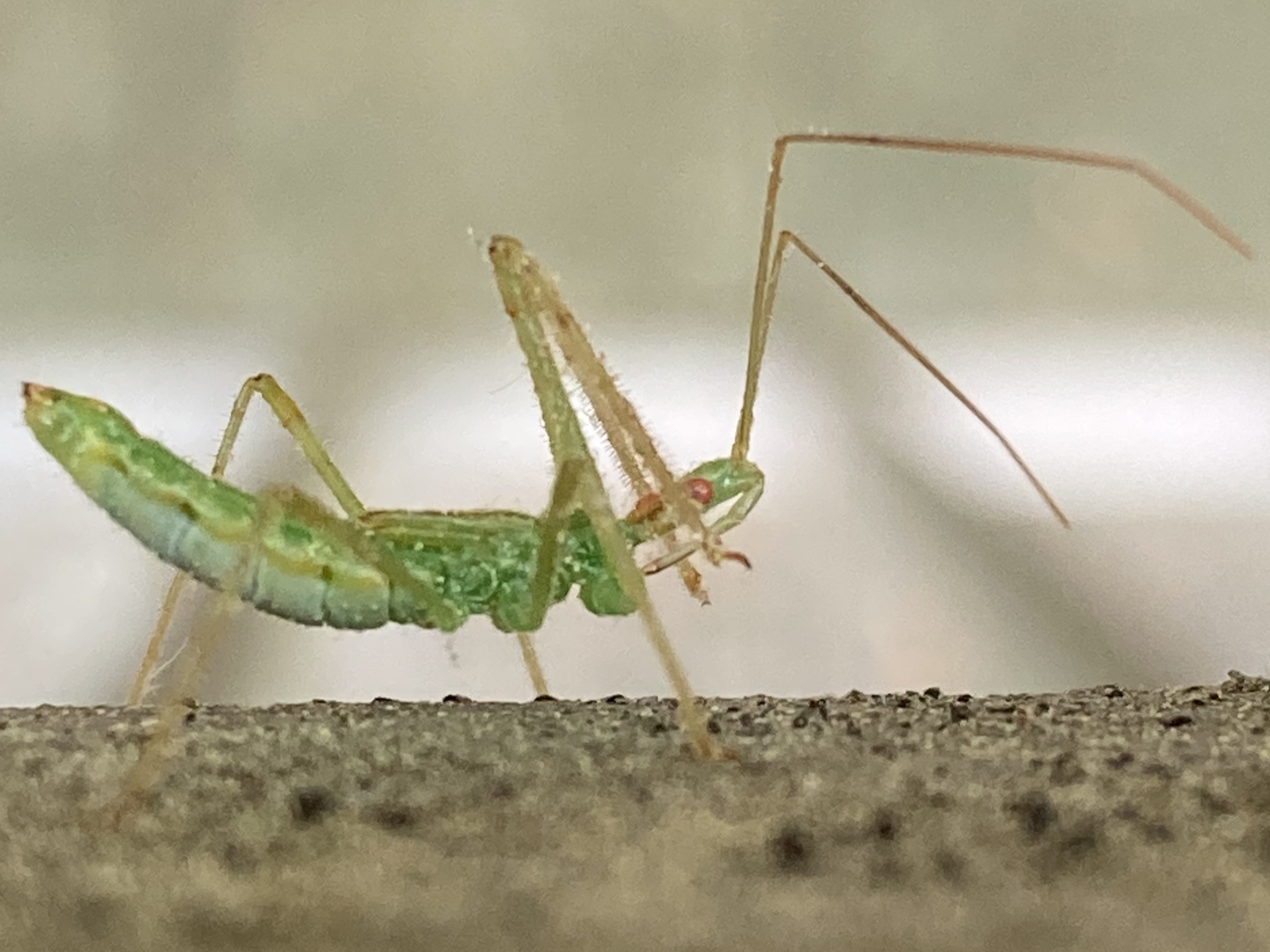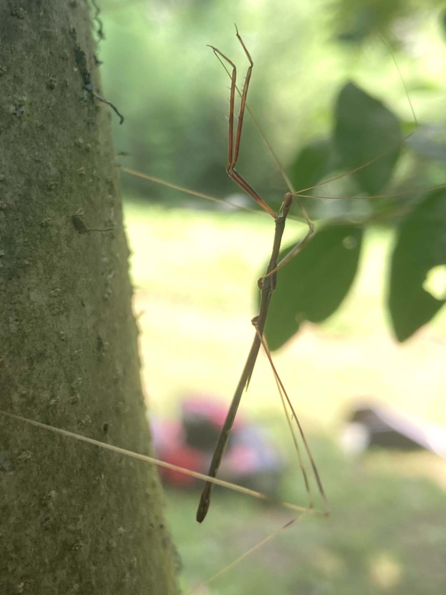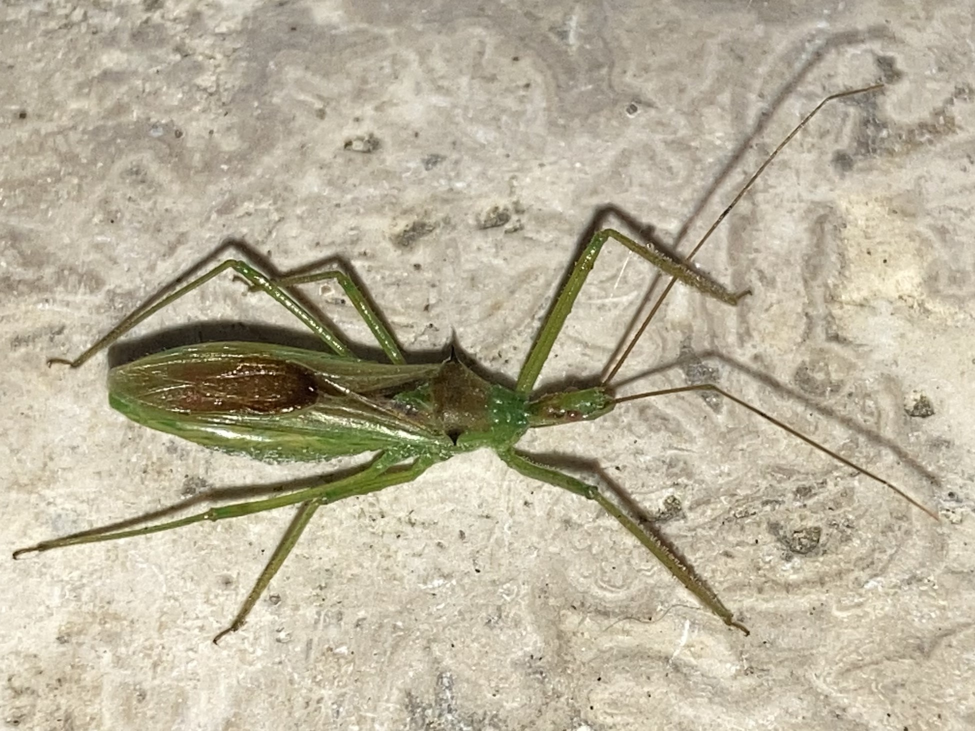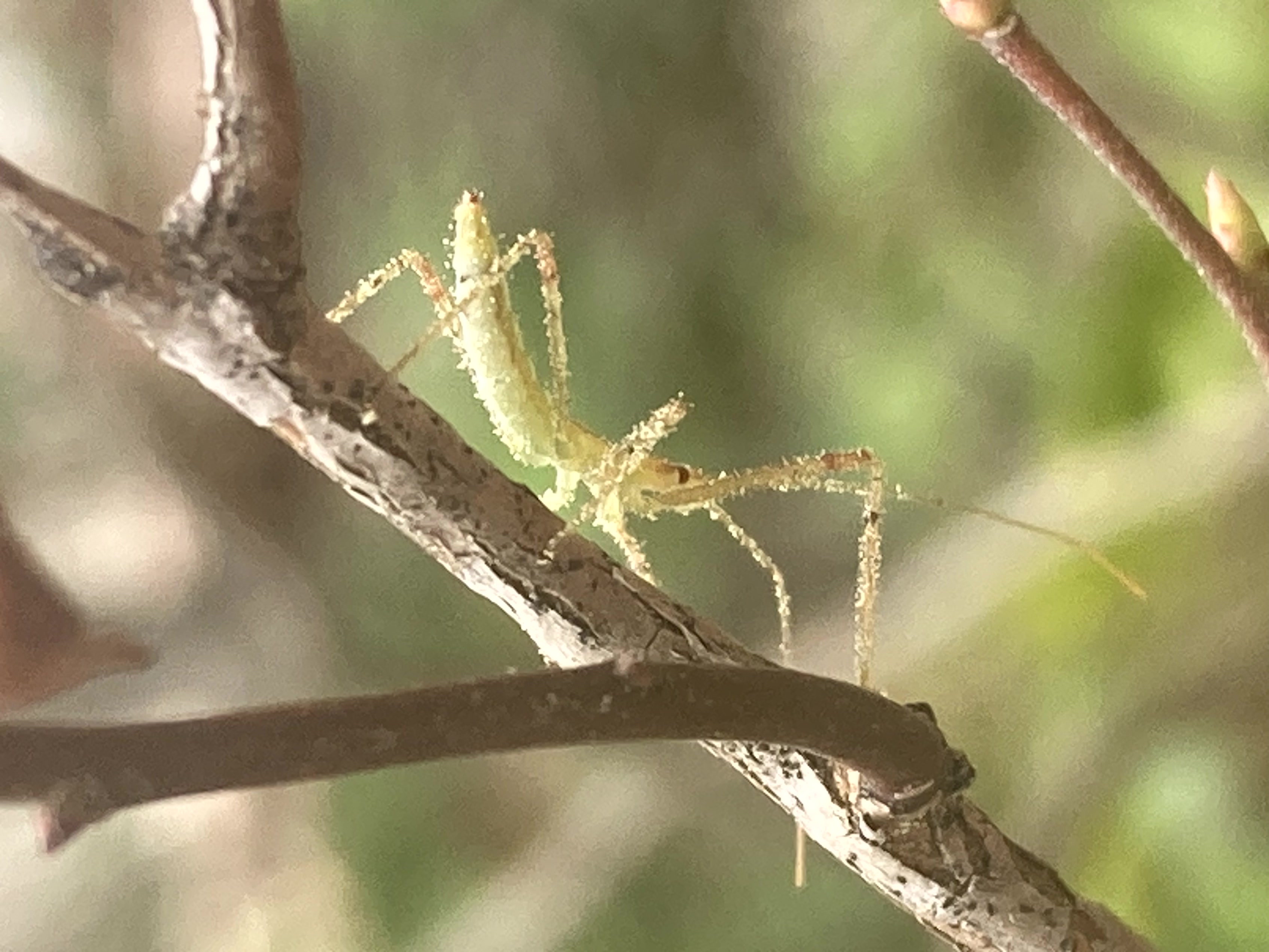 Emesaya brevipennisWhile this insect closely resembles a stick insect, it is actually a member of the assassin bug family. It possesses raptorial forelegs similar to those found on praying mantids. Reportedly, these insects prey on spiders.