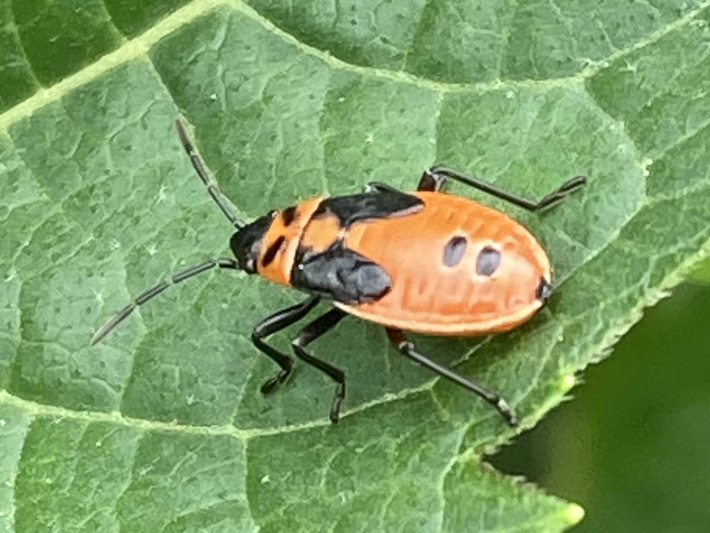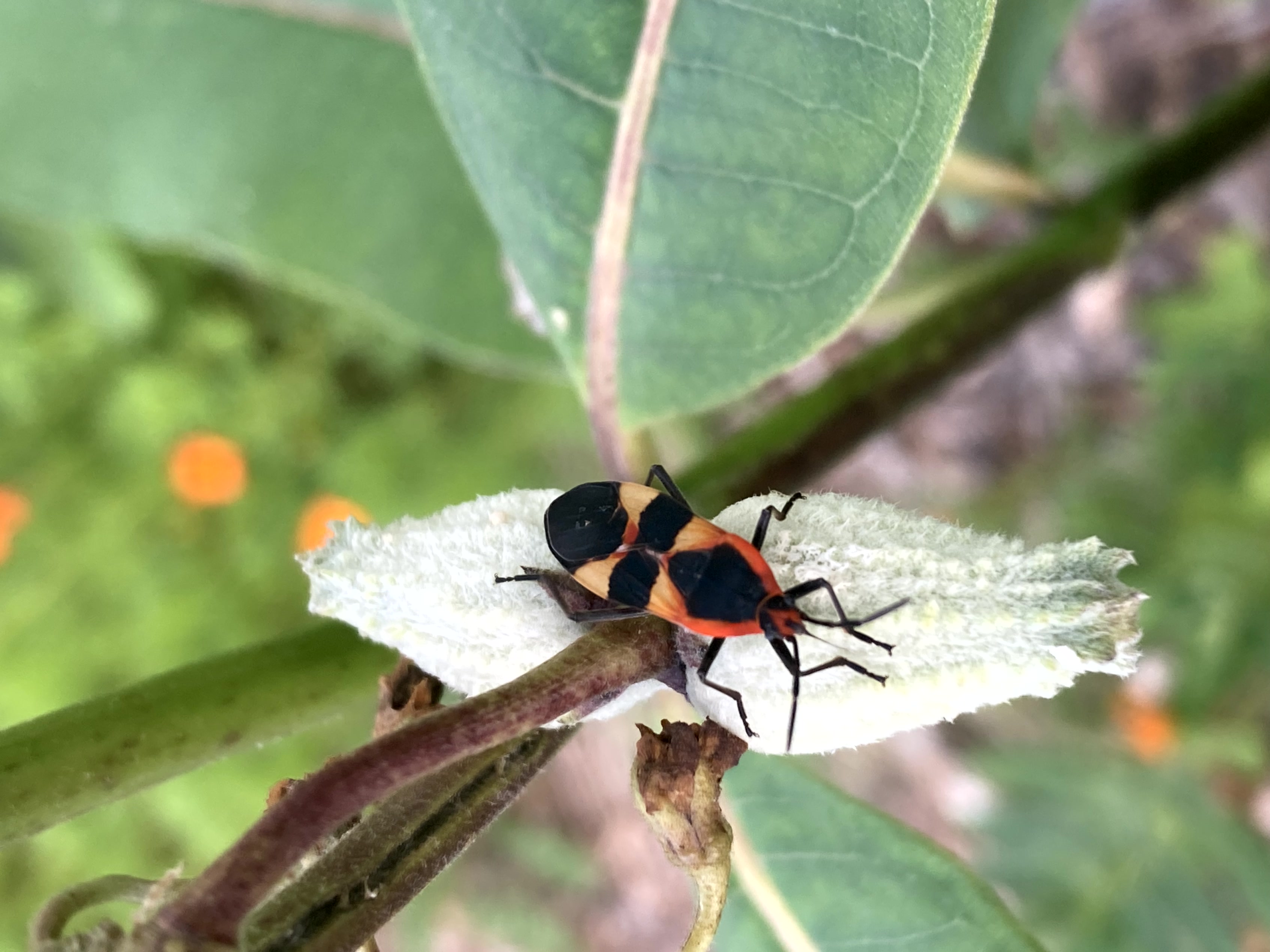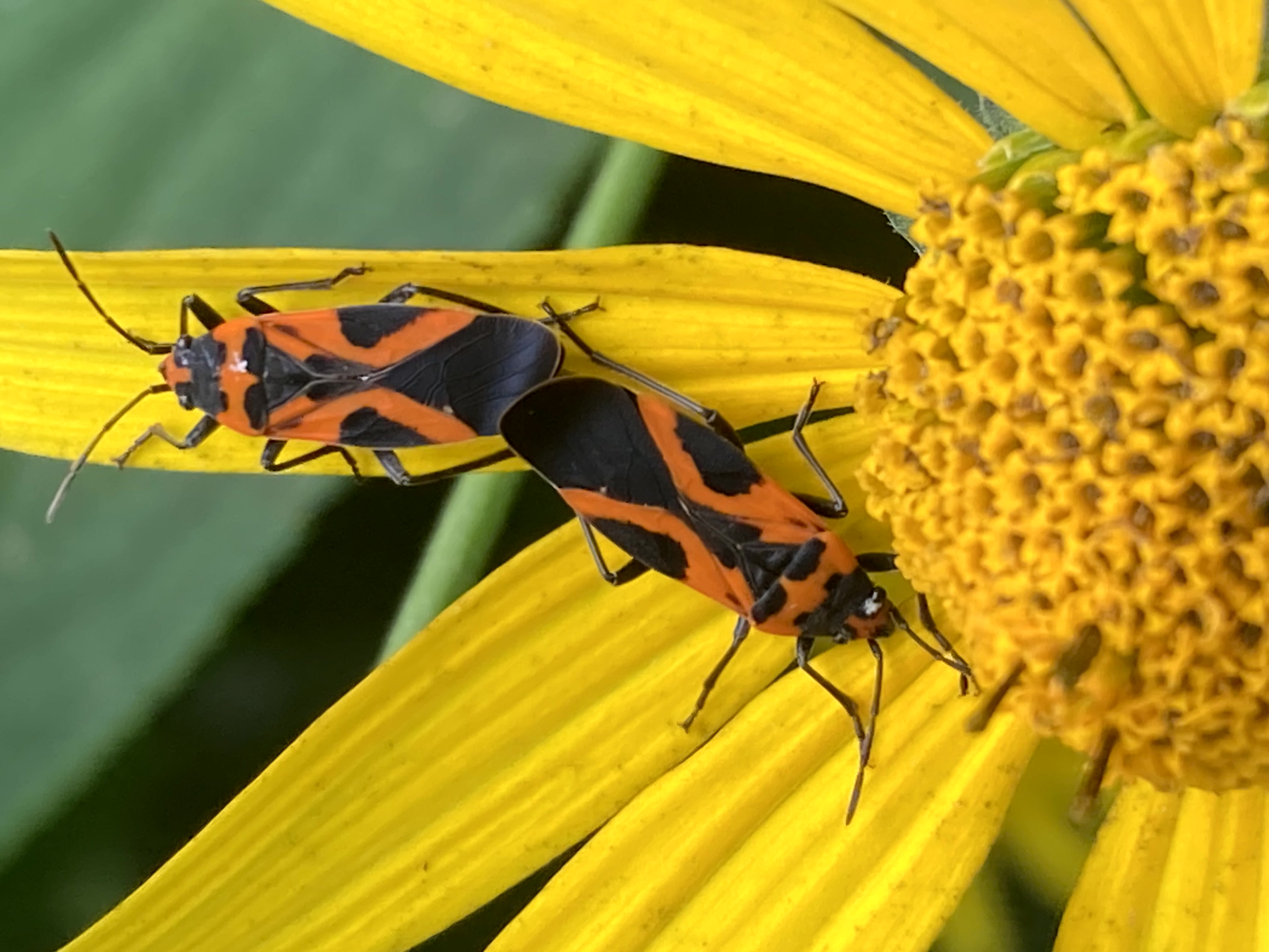 Lygaeus turcicusUnlike the large and small milkweed bugs which feed on milkweed, the false milkweed bug feeds on the false sunflower/ox-eye.