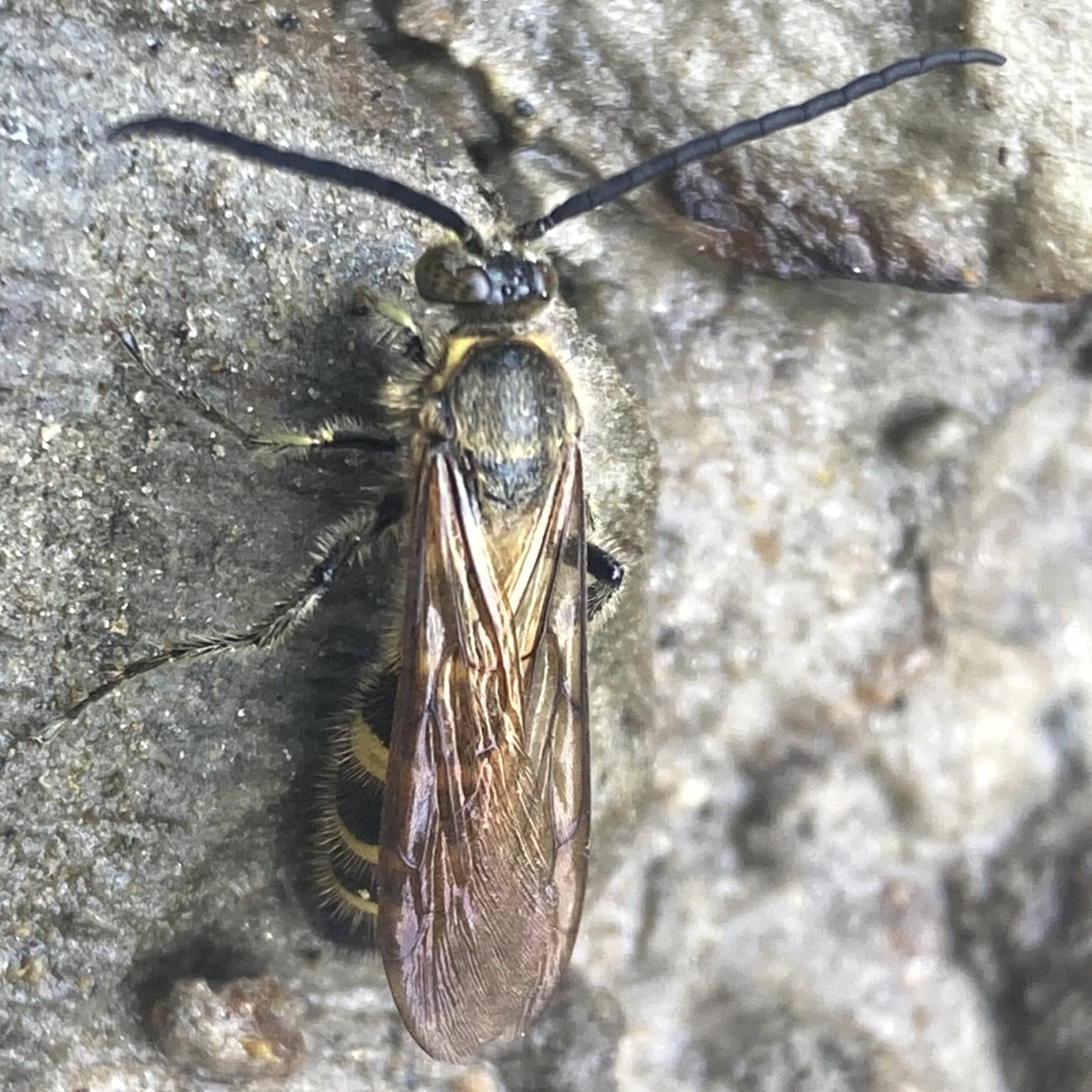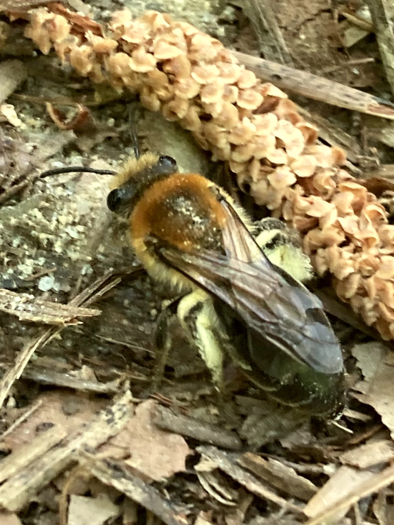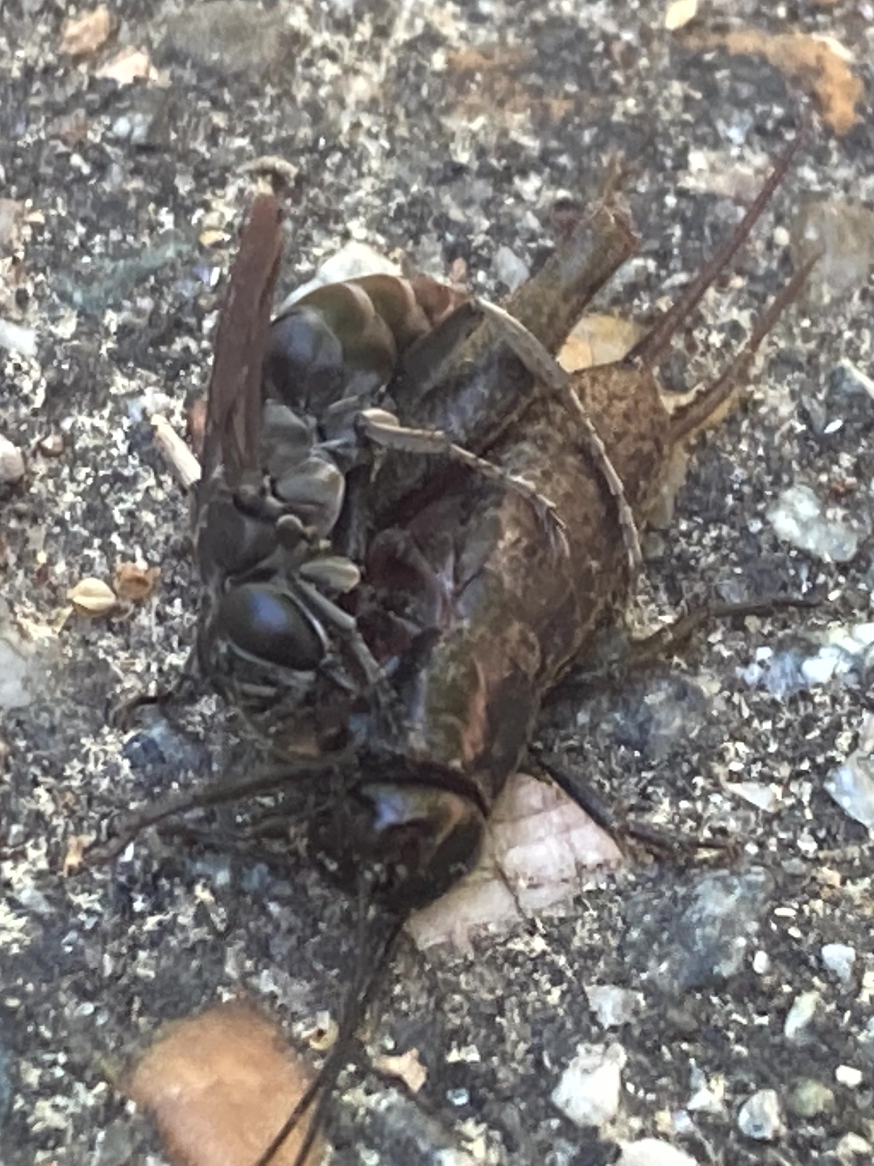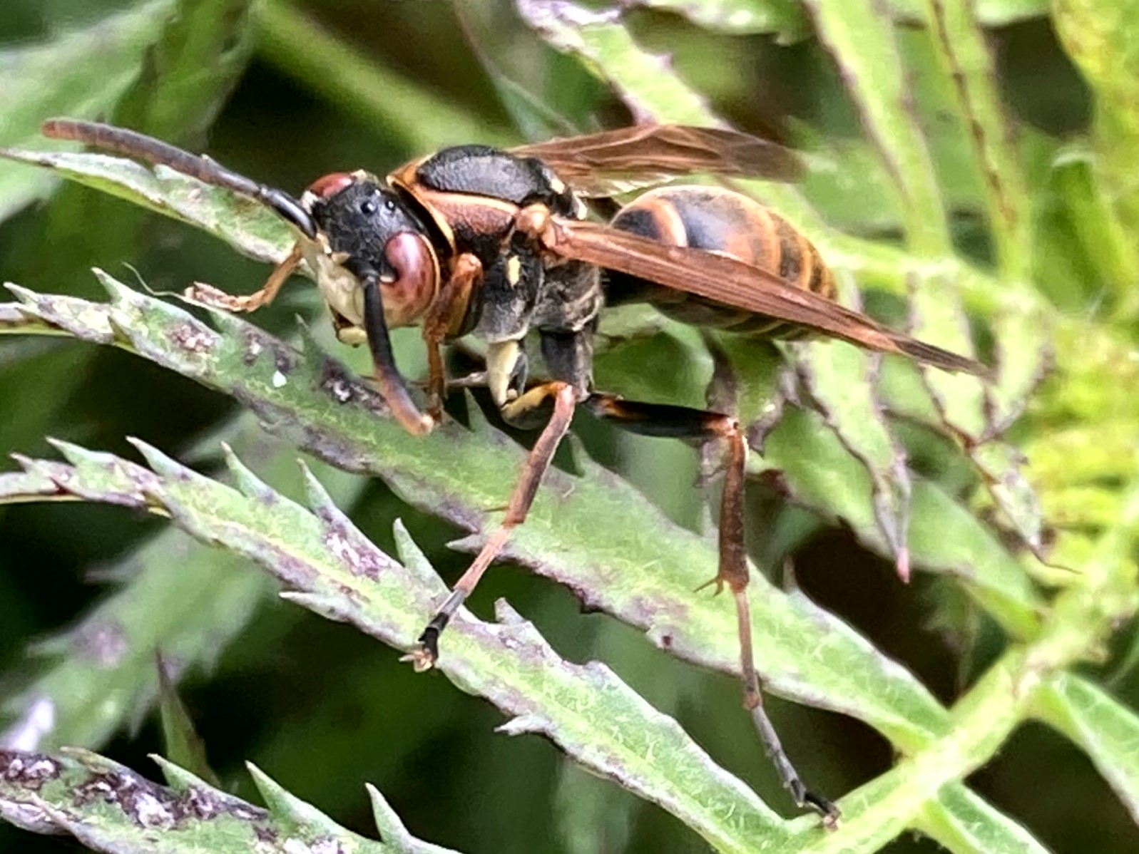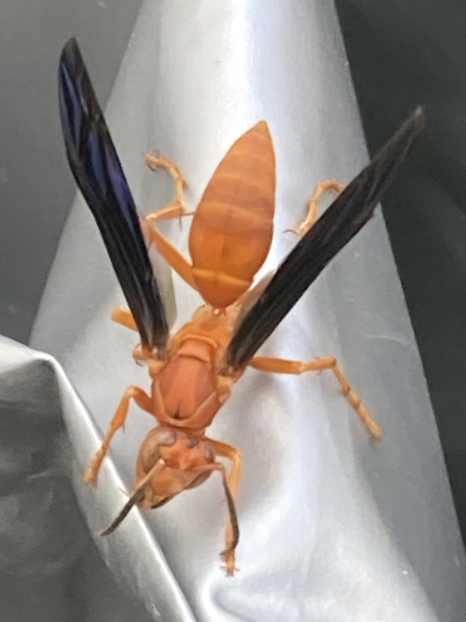 Tachypompilus ferrugineusThis wasp captured a large wolf spider and carried it at least 50ft up the side of a tree.