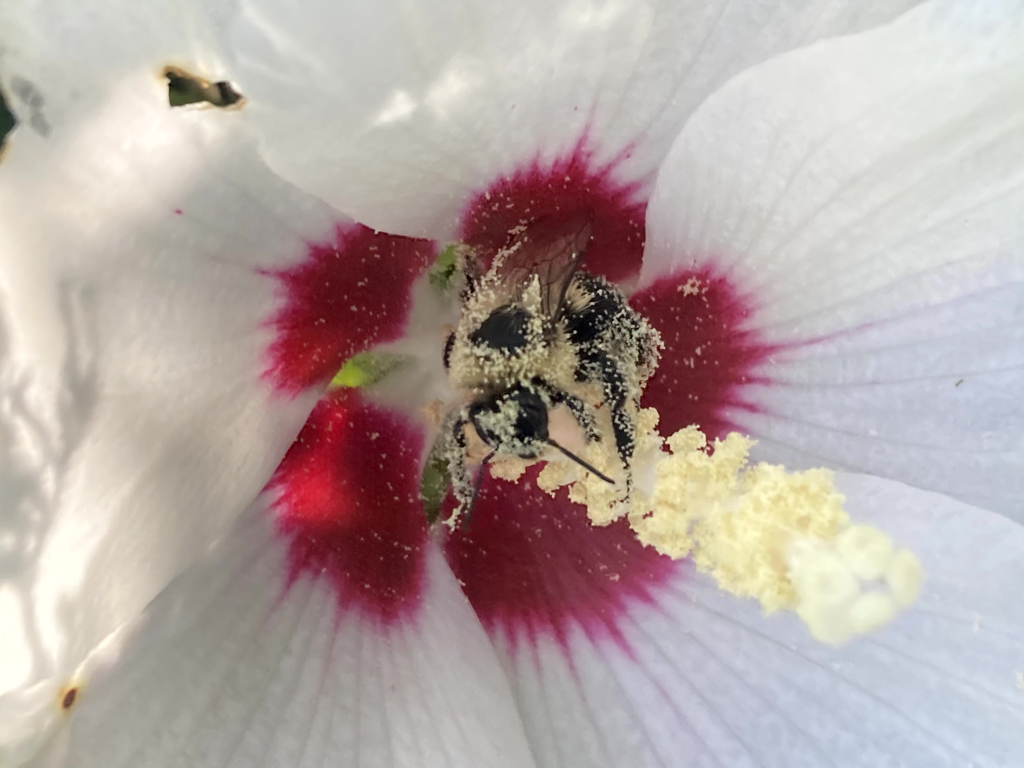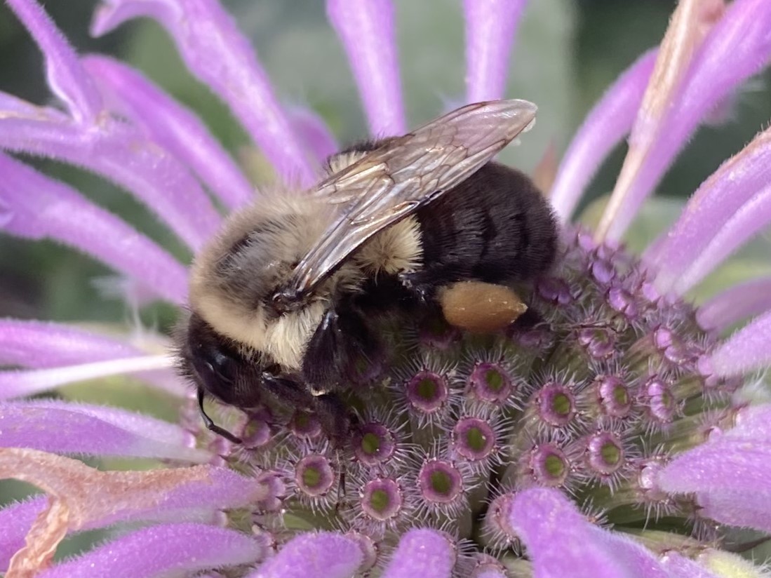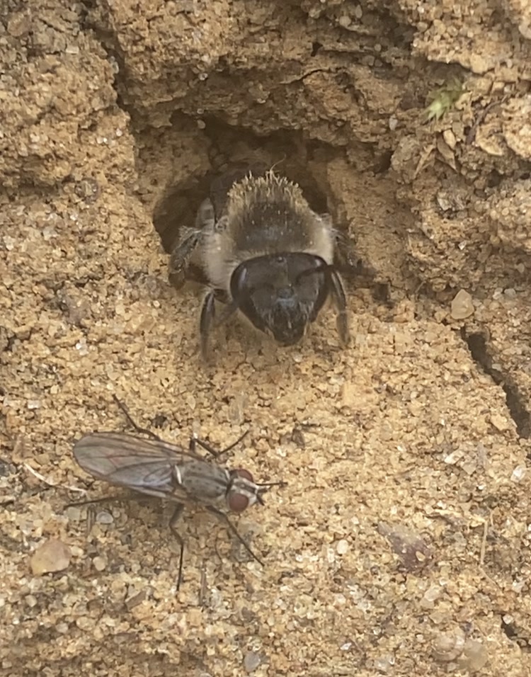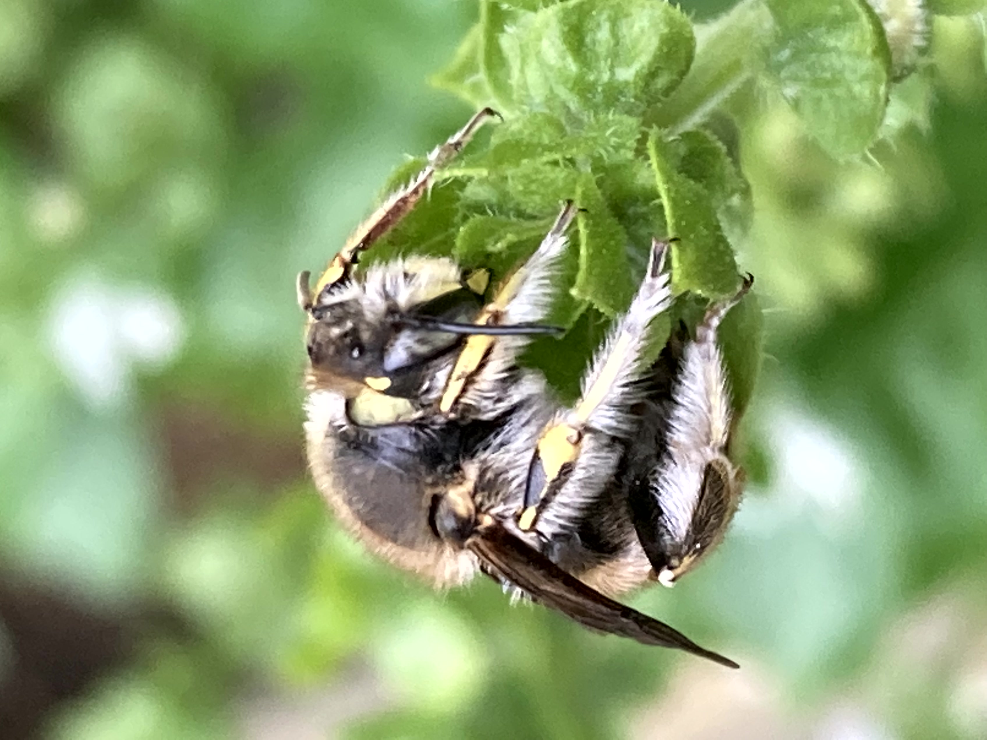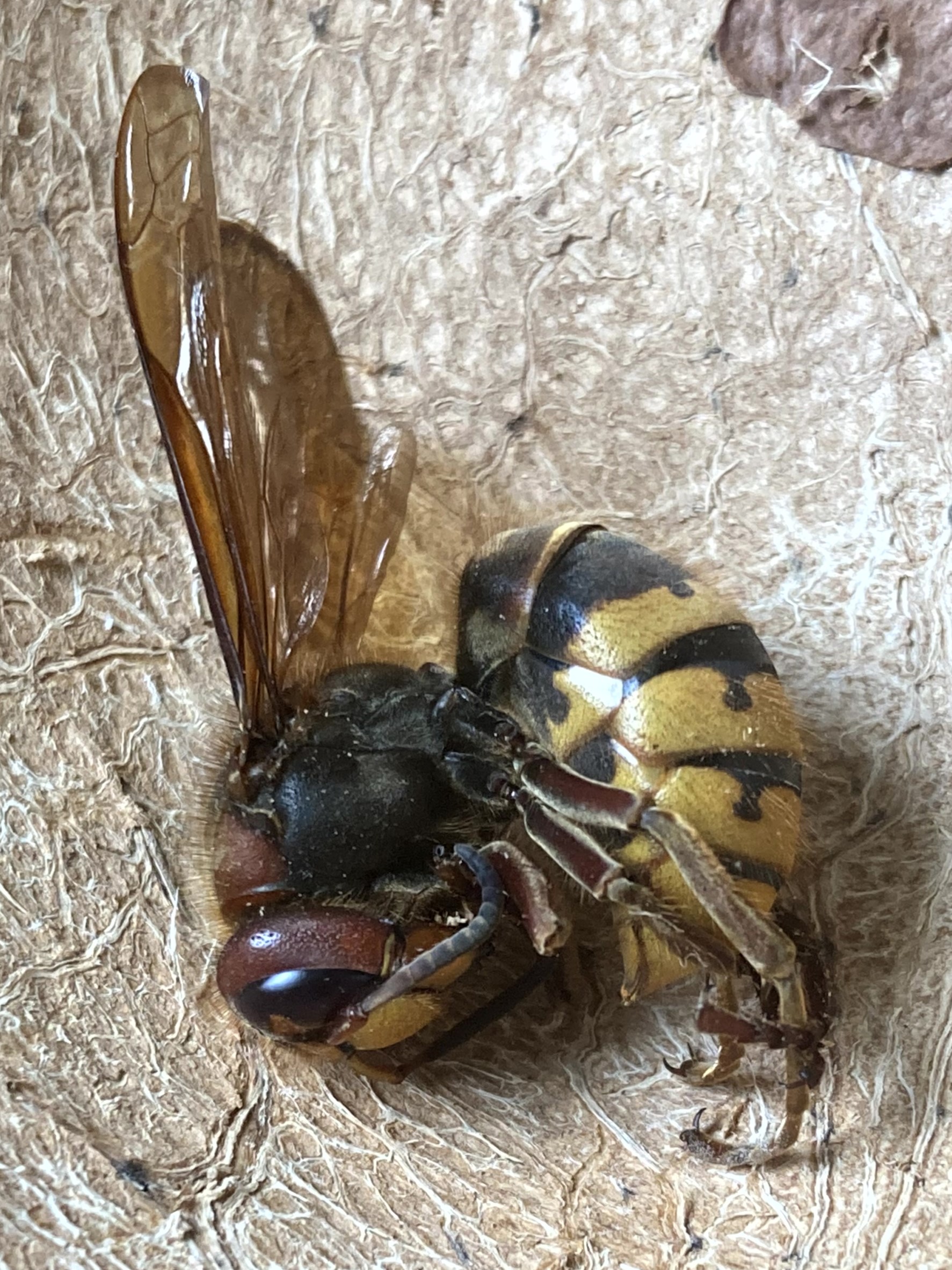 Scolia dubiaThe adults feed on flowers and dig in the ground in search of June beetle larvae to lay their eggs on.